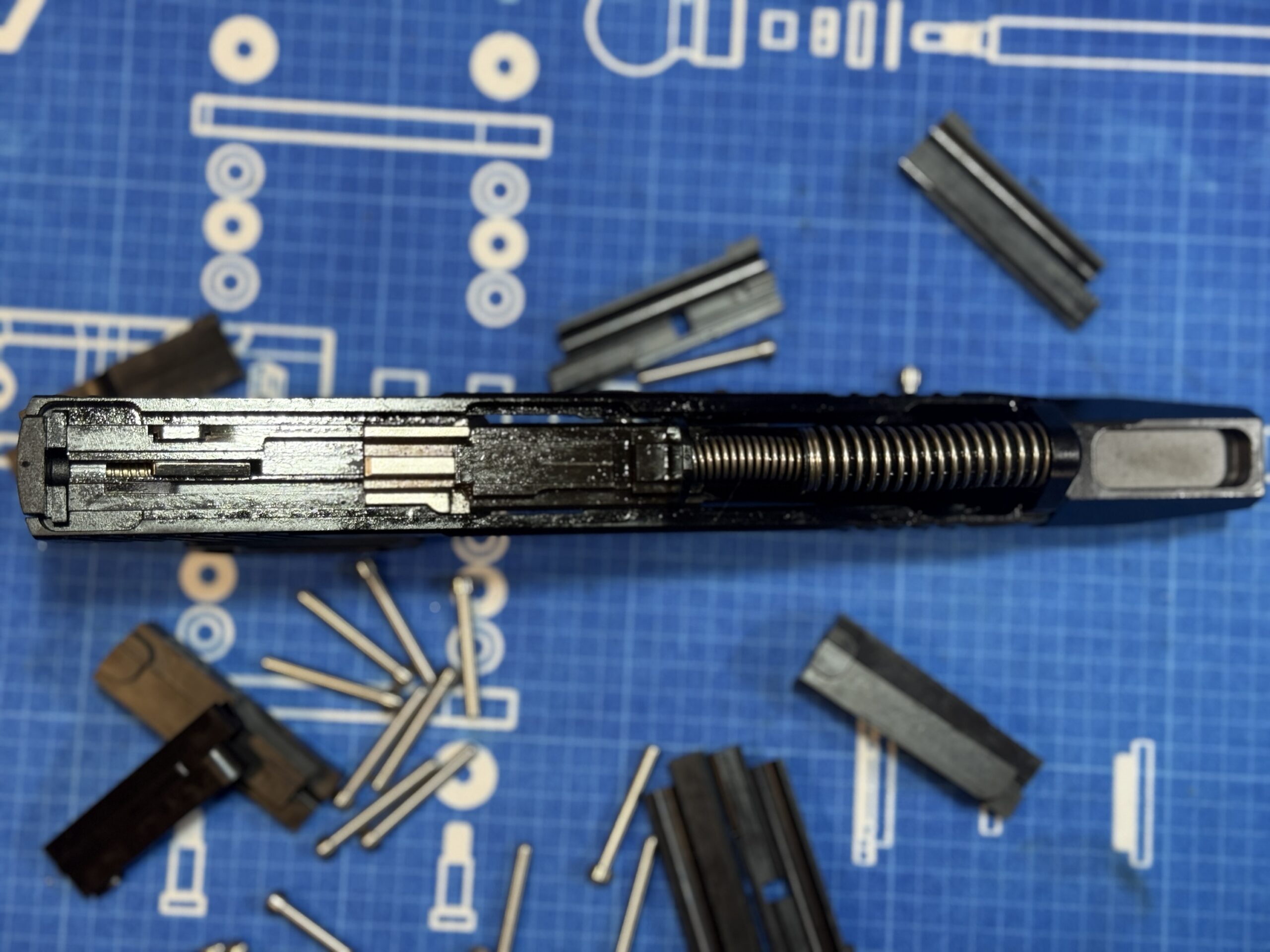 This Steel striker block replaces the weak factory polymer striker housing completely eliminating the cracking/abrasion that destroys TX22s running forced-reset triggers.